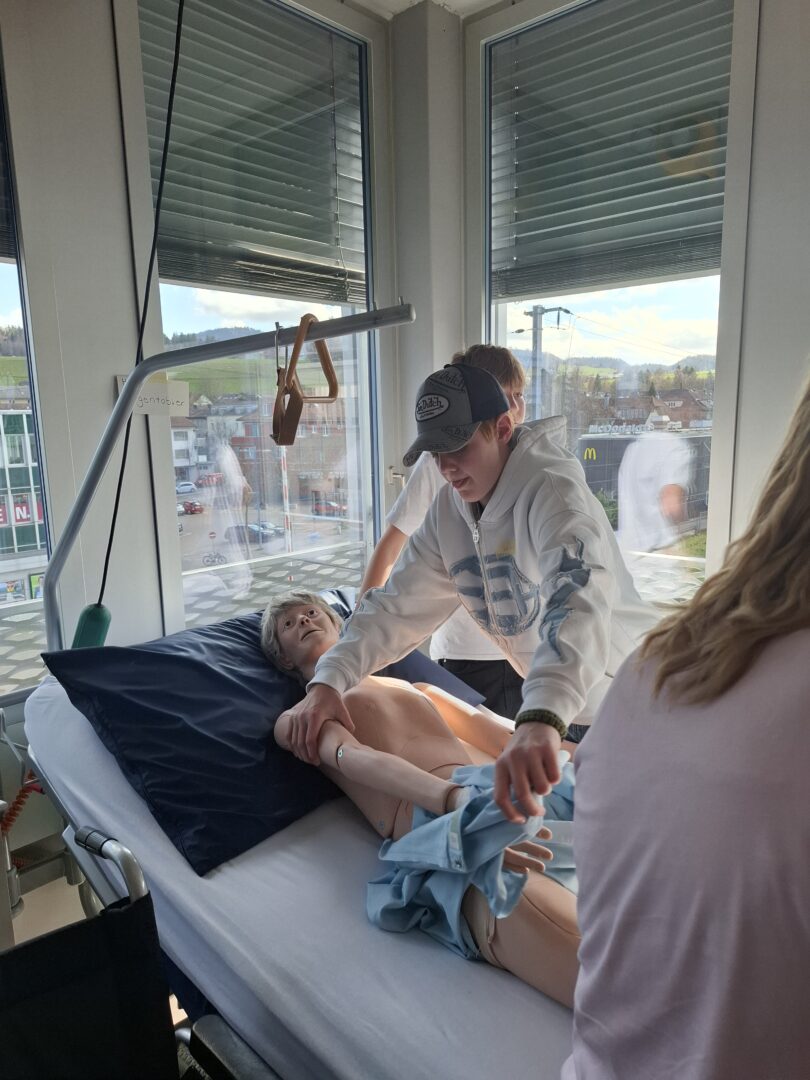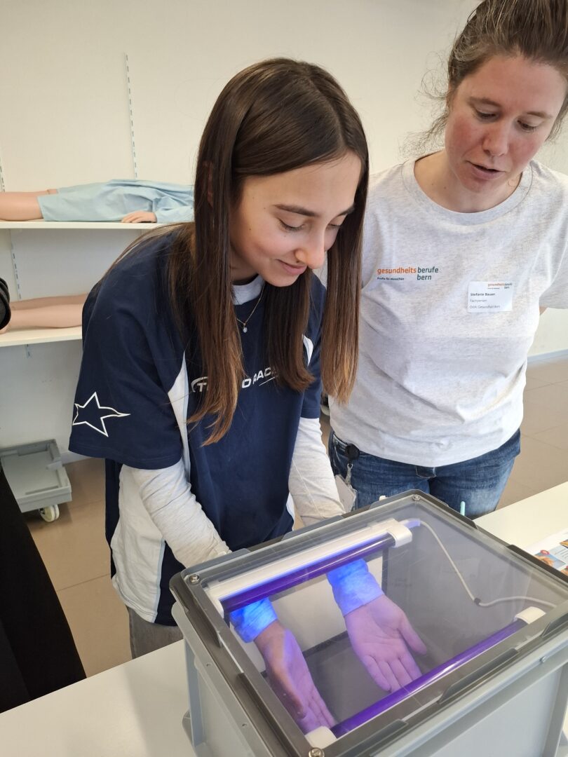 Bereits zum zweiten Mal öffnete unser Überbetriebliches Kurszentrum (ÜK) seine Türen. Im Rahmen der Berner Aktion „Rendez-vous Job“ konnten 5. bis 8. Klässler:innen die Gesundheitsberufe Fachfrau/mann Gesundheit (FaGe) und Assistent/in Gesundheit und Soziales (AGS) bei uns in Köniz ausprobieren.